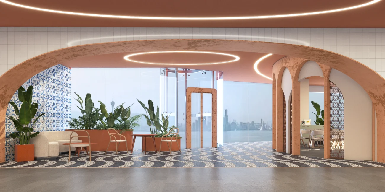 Our architectural design is a testament to openness and connectivity. Embracing the influx of natural light, our space is designed as a welcoming environment that breathes with life. Arch shapes dominate the architectural language, creating a rhythmic flow that inspires visitors to explore the mall like a leisurely promenade. The arches, coated in warm hues, form a harmonious backdrop, setting the stage for a unique shopping experience. To enhance the connection with Macau’s culture, we have seamlessly integrated Portuguese elements throughout the space. This not only pays homage to the local heritage but also creates a unique identity for the shopping mall.