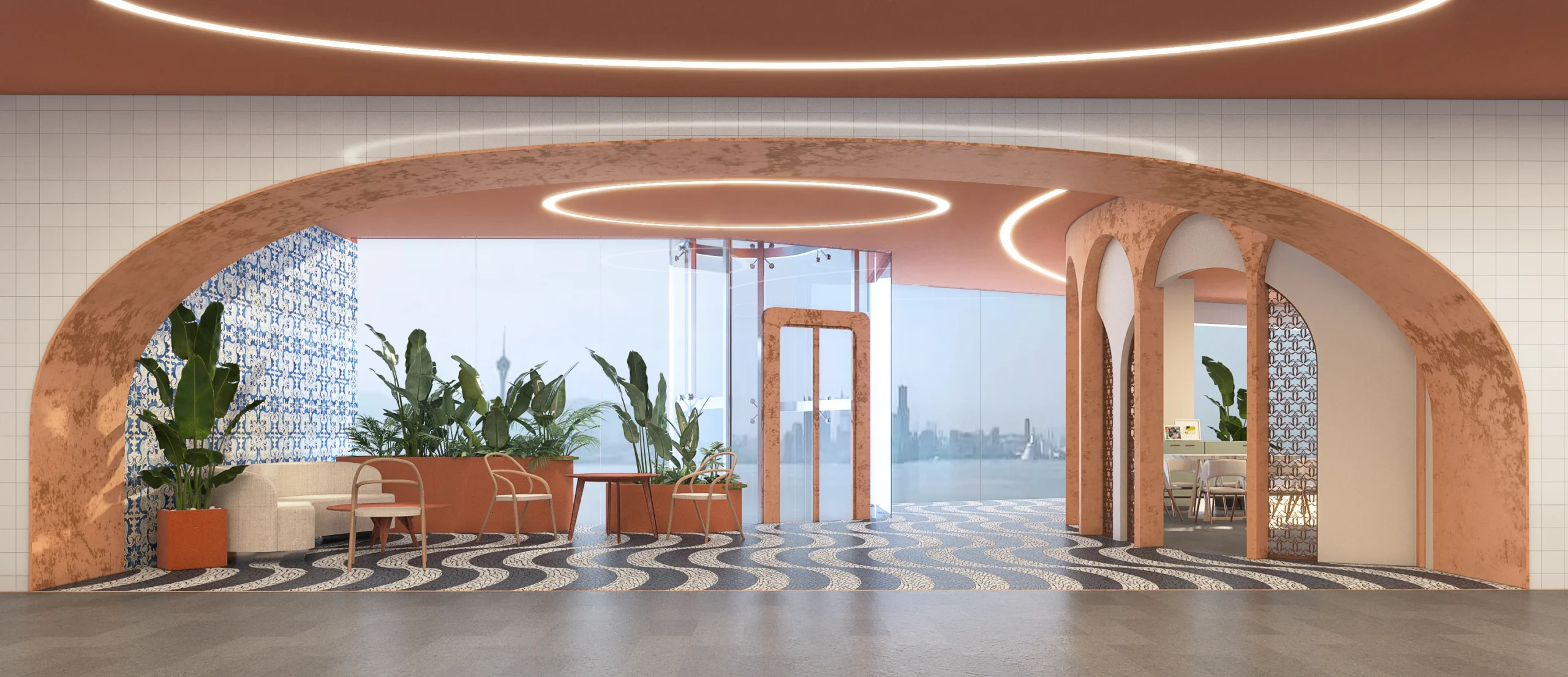 Our creative approach began with envisioning the space as an interior plaza, where every detail is meticulously crafted to evoke a sense of community, inspiration, and cultural connection.